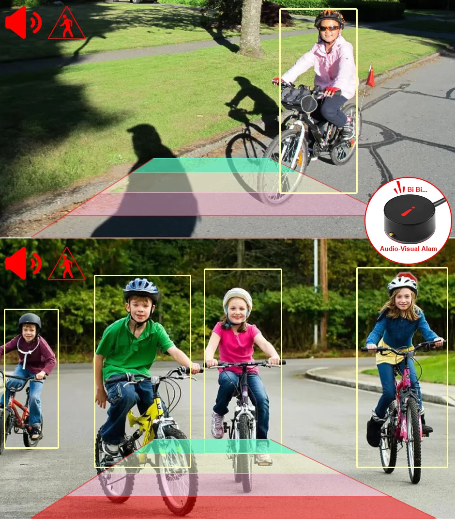 The Al camera can detect pedestrians and vehiclesat the rear of the vehicle, and provide real-time visual and audio alarm to reminddrivers of potential dangers. lt is regarded as a safer vehicle product, which effectively improve driving safety.