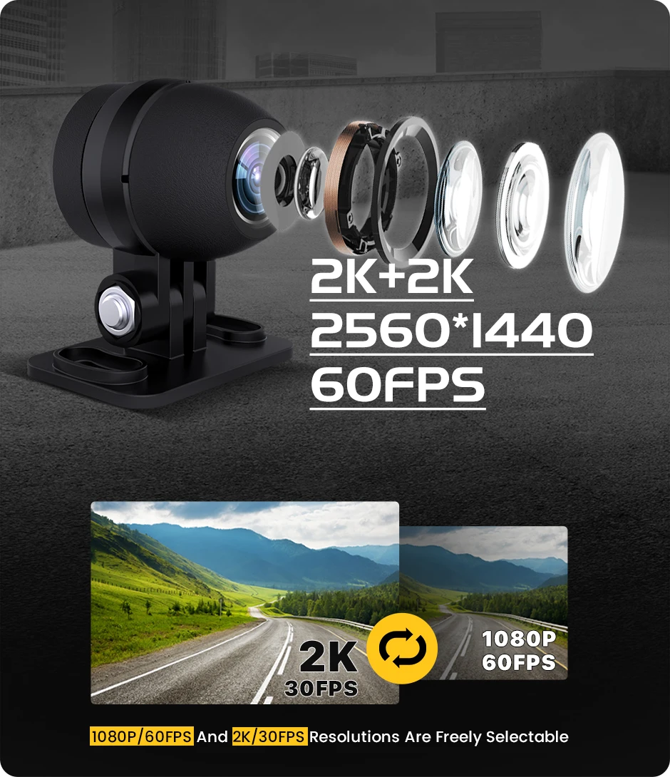GreenYi 2K Motorcycle DVR Dash Cam with EIS, WiFi, GPS Logger, 3" IPS Screen, Waterproof Front & Rear View Camera Recorder Box - Record and share your motorcycle rides in stunning 2K clarity with this all-in-one dashcam. Its WiFi and GPS connectivity, coupled with a 3" IPS screen, make it easy to use and access your footage.