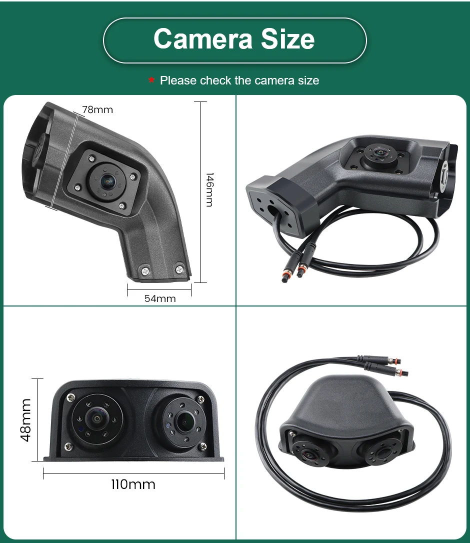 * Truck-Specific Aviation Cable, Default 1pcs 15 meters extending cable for rear view, 3pcs 5 meters extending cable for front, left and right view. Support to customize the cable as you need.