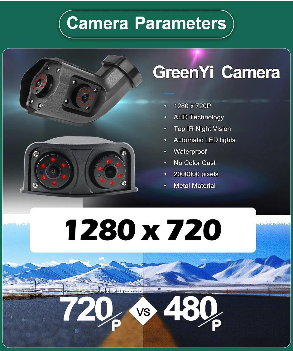 * Support AHD 720P camera, clearer and advanced bright color separation, signal filtering, 3D noise reduction technology, higher image clarity and better image restoration.