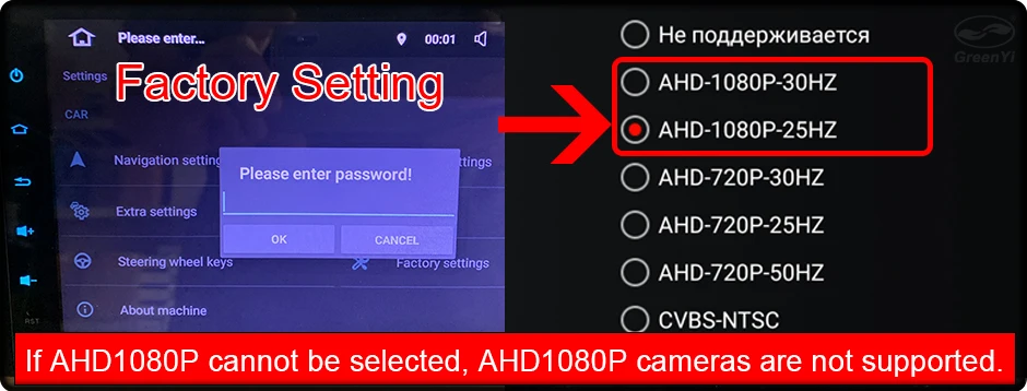 Please check whether the Android unit supports AHD1080P camera!