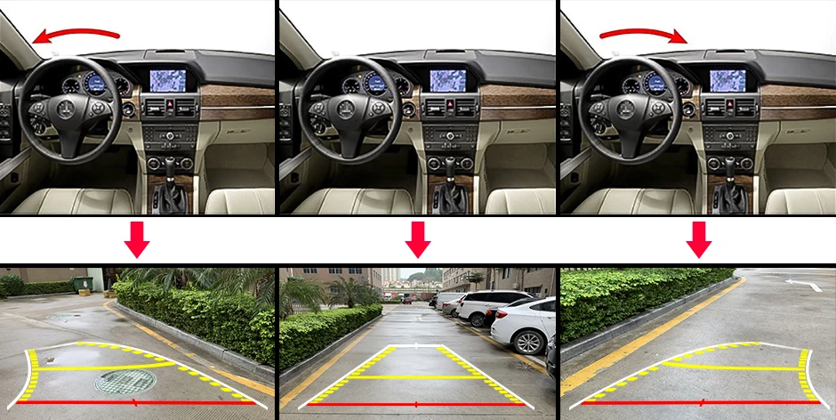 • Adjust the track automatically according to the moving position and speed of car body and angle, help you make parking easier.