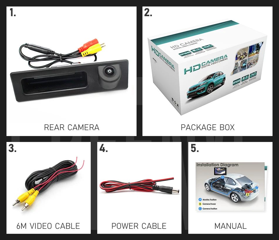 • Not need CANBUS or OBD interfaces, camera built-in reversing Tracks module, just connect the power.