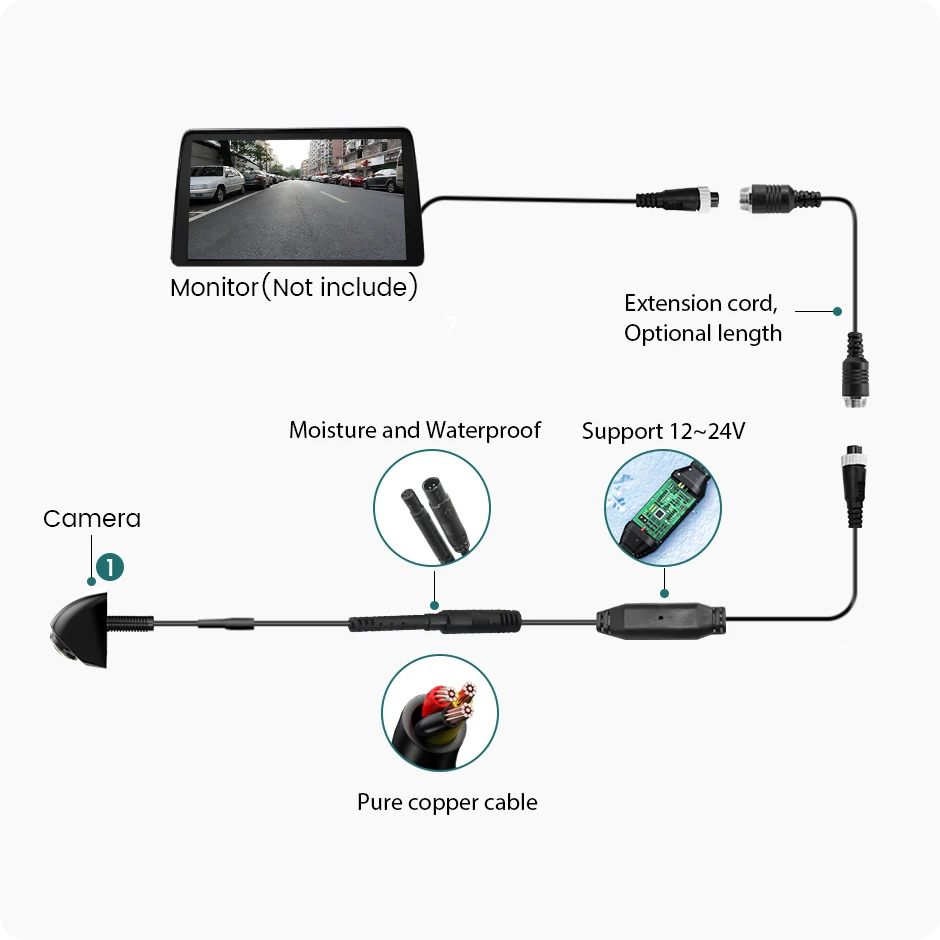 NOTE: ONLY AHD VIDEO SIGNAL --- This car rearview camera can only be used with AHD monitors.